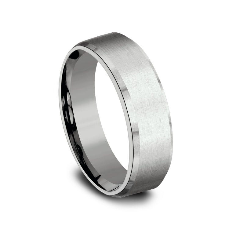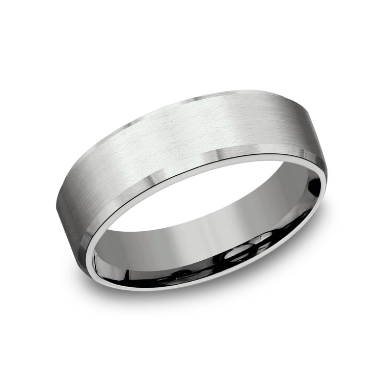 6.5mm, Lightweight comfort fit 14K White Gold Satin finish, slightly beveled edges