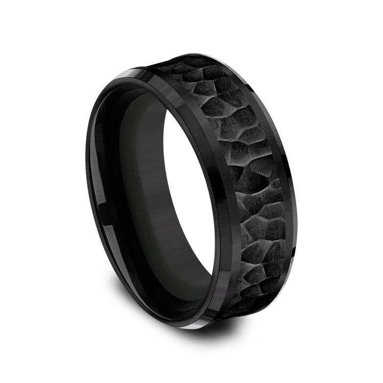 Hammered center, polished bevel edges