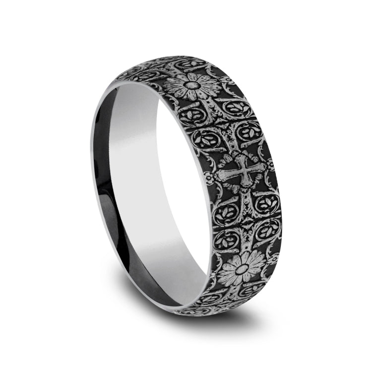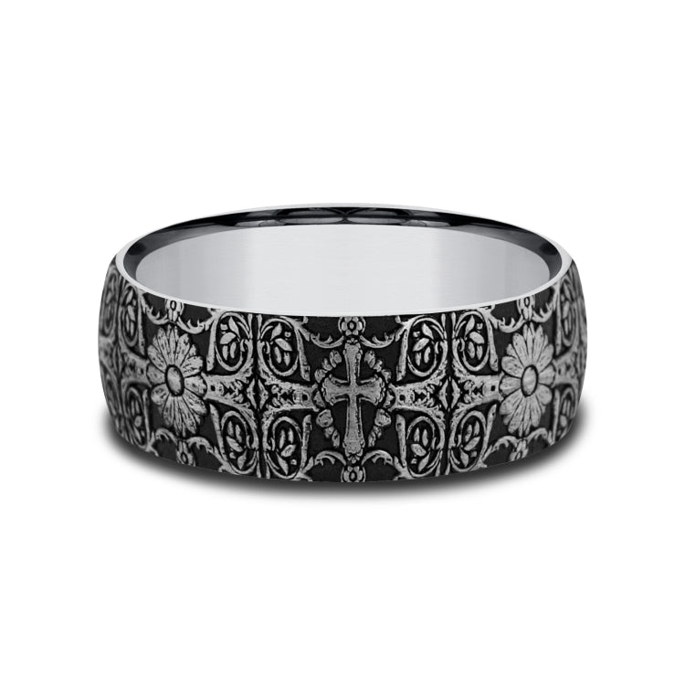 8mm, Comfort fit Tungsten Cross tiled pattern