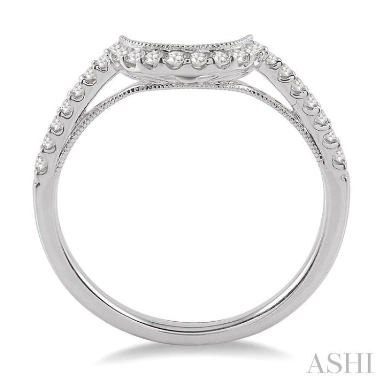 Commit your love to her with this spectacular diamond wedding band. Styled in glinting 14 karat white gold this curved designed band radiates sparkle with 22 round cut diamonds in pave setting. Total diamond weight is 1/5 Ctw.