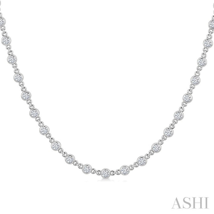 2 Ctw Bezel Set Round Cut Diamond Necklace in 14K White Gold