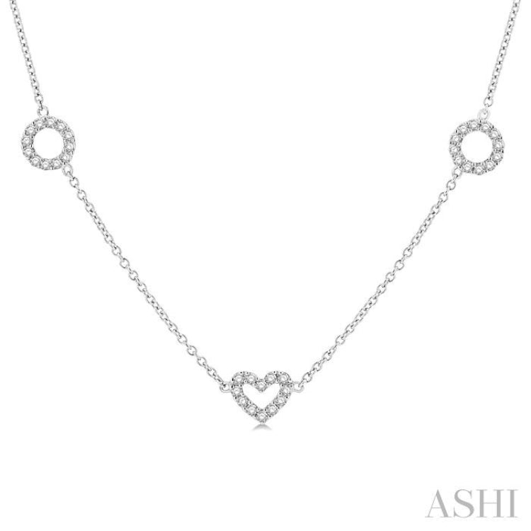 1 Ctw Heart and Circle Round Cut Diamond Station Necklace in 14K White Gold