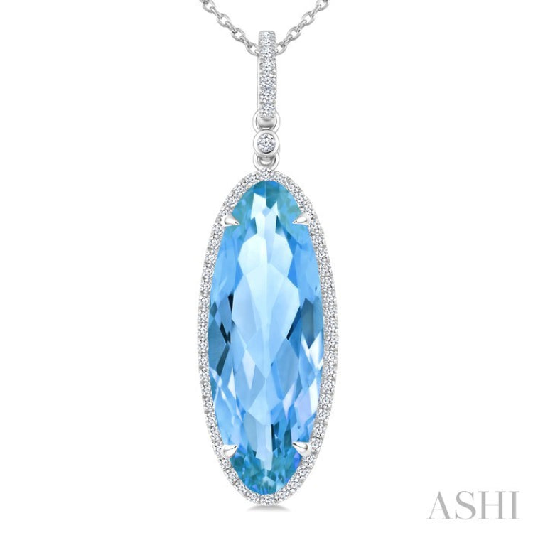 22X8 MM Oval Shape Blue Topaz and 1/4 Ctw Round Cut Diamond Semi-Precious Pendant With Chain in 14K White Gold
