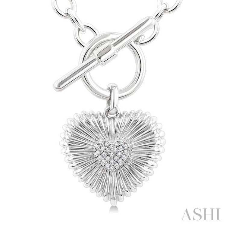 1/10 Ctw Heart Fluted Toggle Single Cut Diamond Fashion Necklace in Sterling Silver