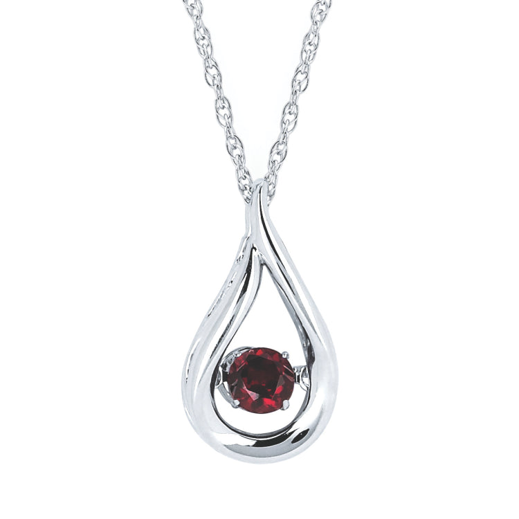 Shimmering Diamonds Teardrop Pendant with 3/8 tgw. Garnet Birthstone in Sterling Silver (January)