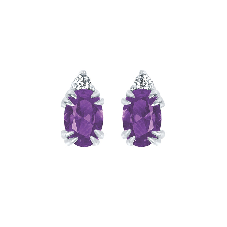 0.04Ctw Diamond & Amethyst Birthstone Earrings