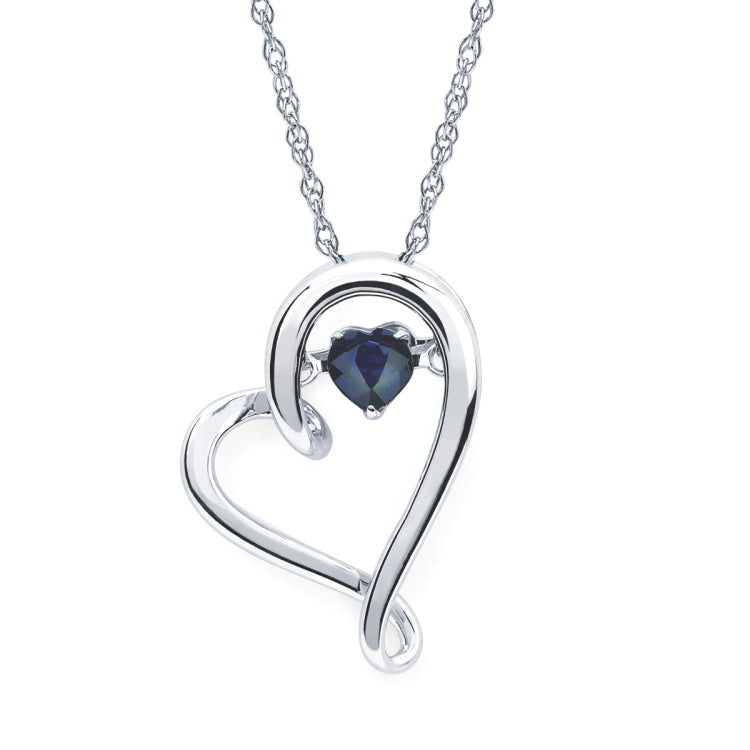 Shimmering Diamonds Heart Pendant With 4mm Sapphire Birthstone In Sterling Silver