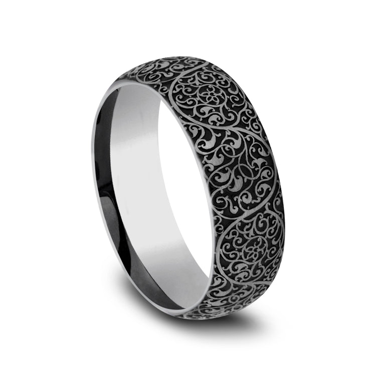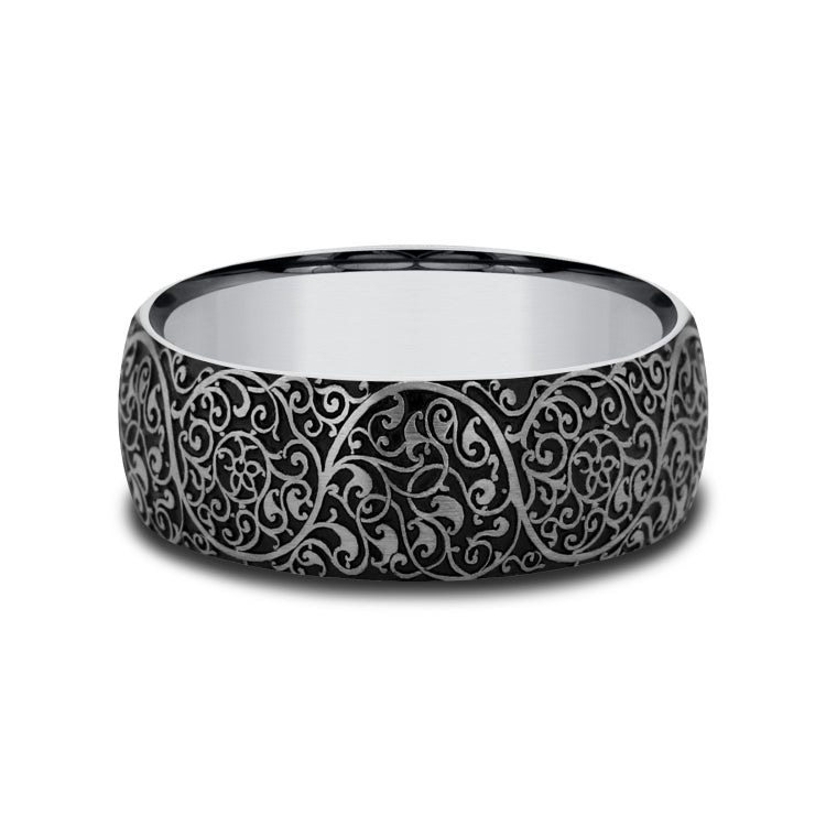 8mm, Comfort fit Tungsten Arabesque design