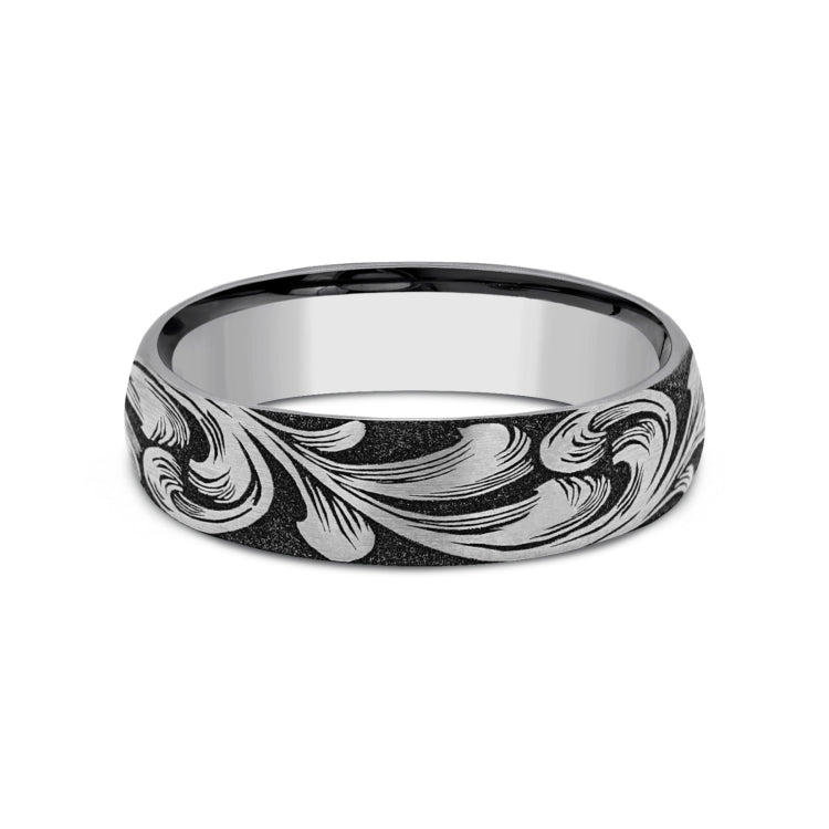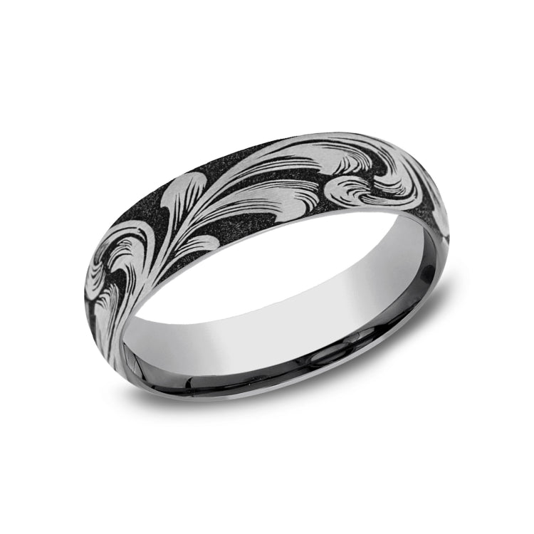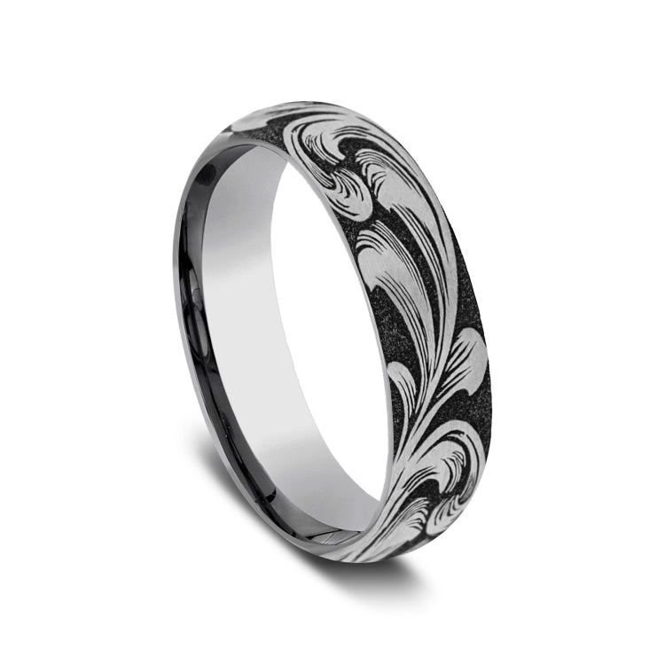 6mm, Comfort fit Tungsten Large barrel script pattern