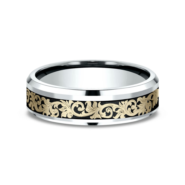 Vintage script pattern with wear resistant black detailing, polished bevel edges