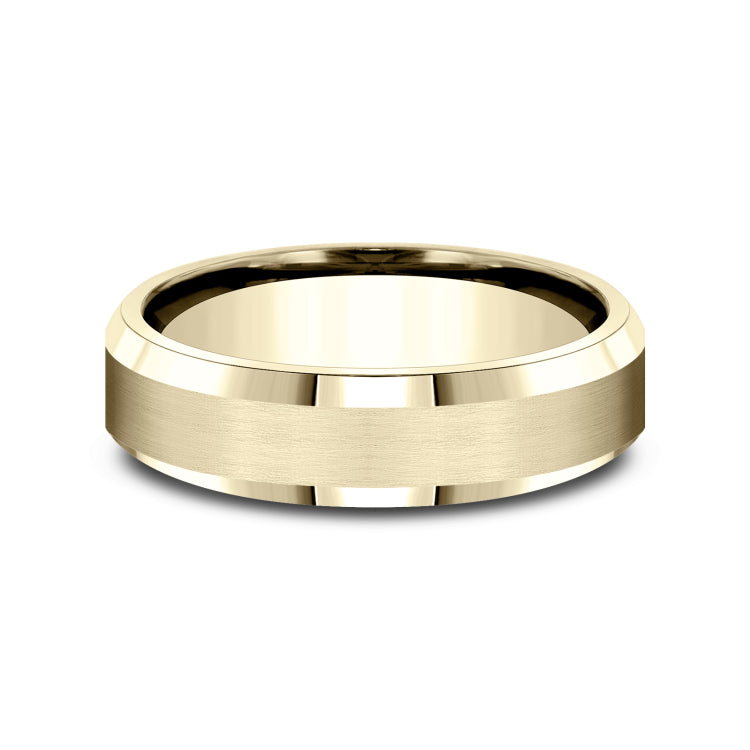 6.5mm, Lightweight comfort fit 14K Yellow Gold Satin center, polished bevel edges