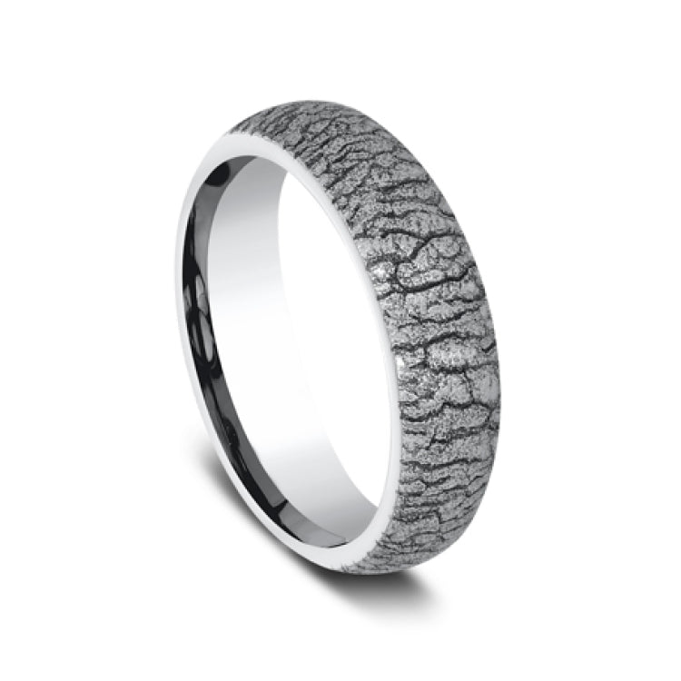 6mm, Comfort fit White Cobalt Tree bark patterned center