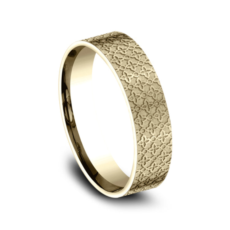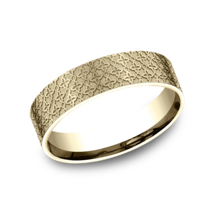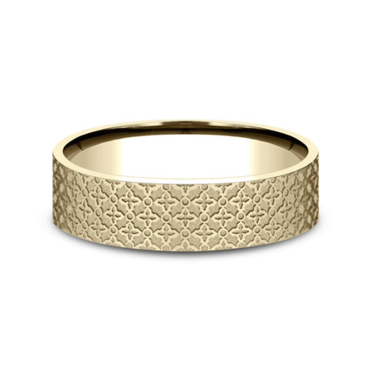 6mm, Comfort fit 14K Yellow Gold Ottoman floral pattern